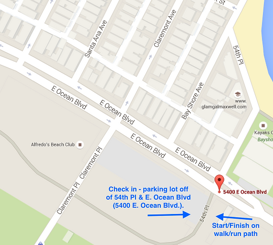 Address - * Please check in at the tables closest to 54th Place, at the start of the beach path. NOT near Claremont Ave. Long Beach path in Belmont Shores -- 5400 E. Ocean Blvd. Long Beach, CA 90803 (off of 54th Place and Ocean Blvd.)